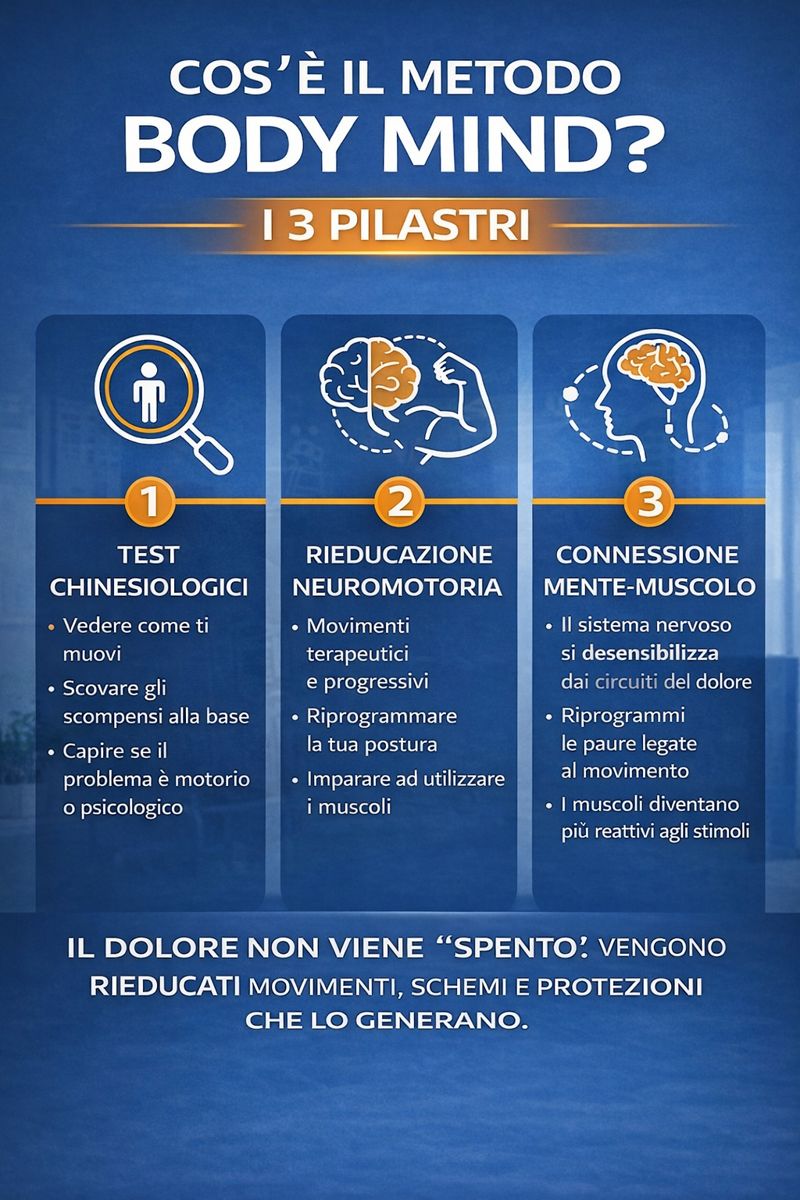 👉 il dolore non è solo nel punto in cui lo senti, ma nel modo in cui il corpo si muove e si protegge.